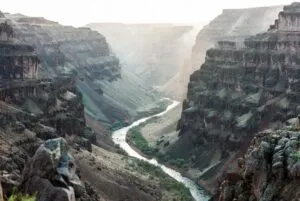Winding River through a Limestone Canyon in Autumn